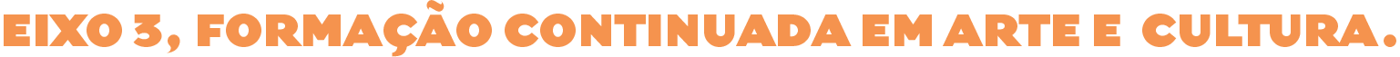 Nesse eixo estão agregados os projetos e ações de formação continuada por meio de cursos livres e oficinas de arte e Cultura. Eles vão sendo propostos considerando: a demanda de cursos trazida diretamente , ou pela necessidade de ampliação do conhecimento da população ou pela demanda do mercado, e ainda dos profissionais educadores.