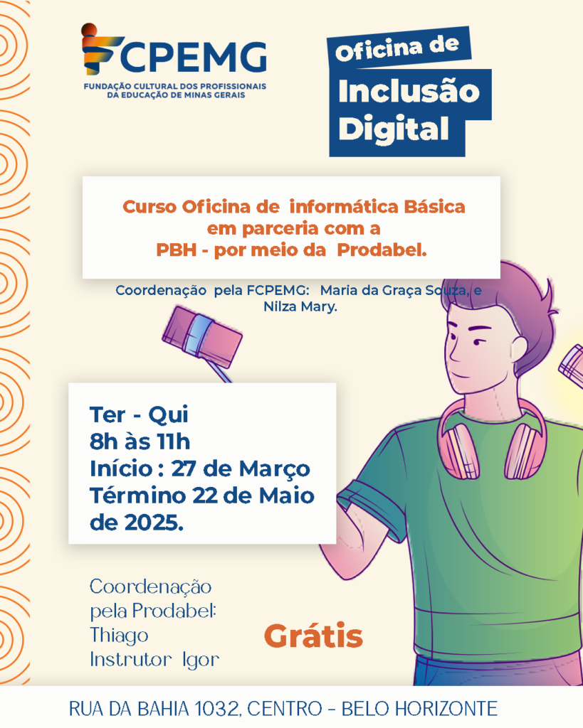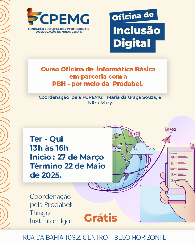 Proposta do curso; promover a inclusão digital de pessoas jovens, adultas e idosas. Especialmente estudantes do EJA BH e líderes comunitários.