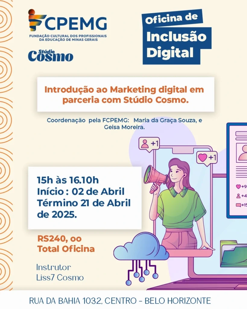 Curso Oficina de Introdução ao uso de plataforma digitais para divulgação de negócios digitais. Realizado em parceria com o Stúdio Cosmo.